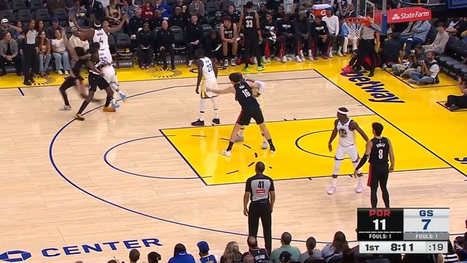 首节比赛,双方外线投得风生水起,库里命中3+1,格林三分两连中,开拓者这边卡马拉三分线外稳定输出。第一节进行到一半,开拓者三分8中4,勇士三分7中3。
