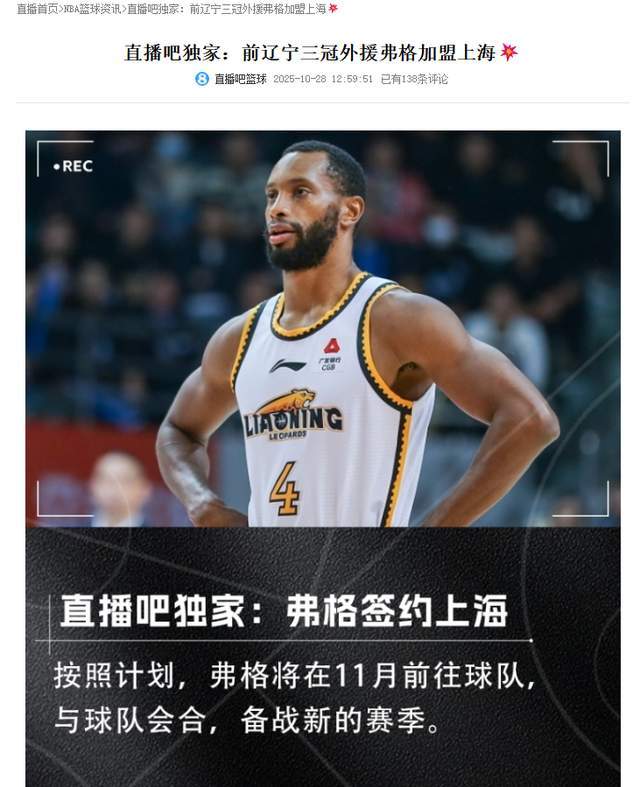 没想到,上海男篮居然入手了。根据直播吧独家报道,上海男篮已经与弗格签订了合作协议,新赛季将代表上海男篮征战CBA联赛。“按照计划,弗格将在11月前往球队,与球队会合,备战新的赛季。”