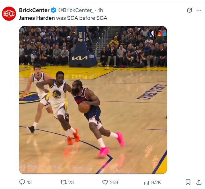 这场比赛哈登有一个碰瓷的动作被美媒Brich Center抓住,他写道:在SGA碰瓷成名之前,哈登就已经在这个领域成名了。