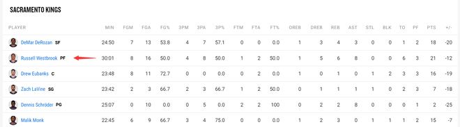 北京时间11月8日,国王不敌雷霆无缘连胜。但这场比赛拿着底薪363万合同的拉塞尔-威斯布鲁克再度贡献了一场华丽的表演,全场比赛24分9助攻6篮板7失误5记三分。