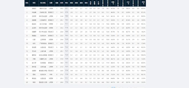 具体包括第5名胡金秋,场均17.7分;第15名廖三宁,场均13.7分;第19名周琦,场均11.8分。