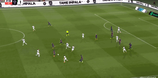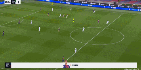 第45分钟,德容送妙传,费兰接球打门被扑