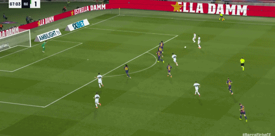 第11分钟,埃尔切后防送礼,费尔明助攻费兰破门,巴萨连入两球2-0!