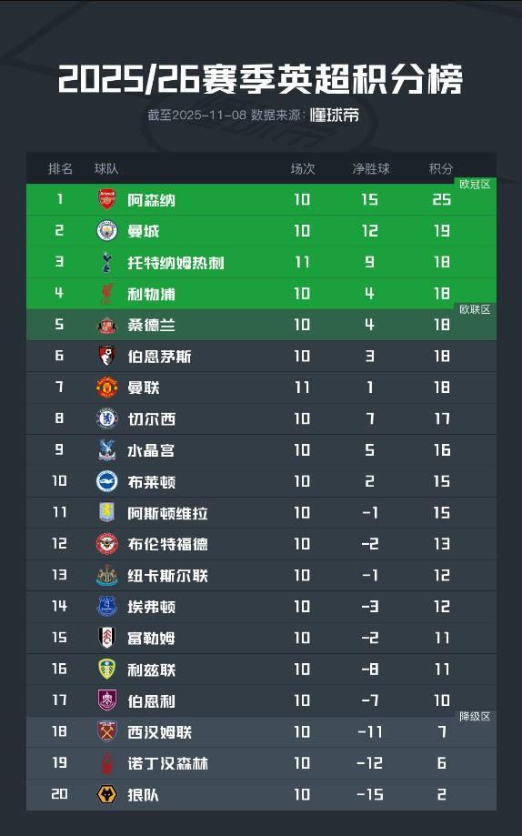 目前,曼联以18分位居英超积分榜第7名,而净胜球为+1,是上半区净胜球最少的球队,值得一提的是,到目前为止,英超下半区球队的净胜球都是负数。