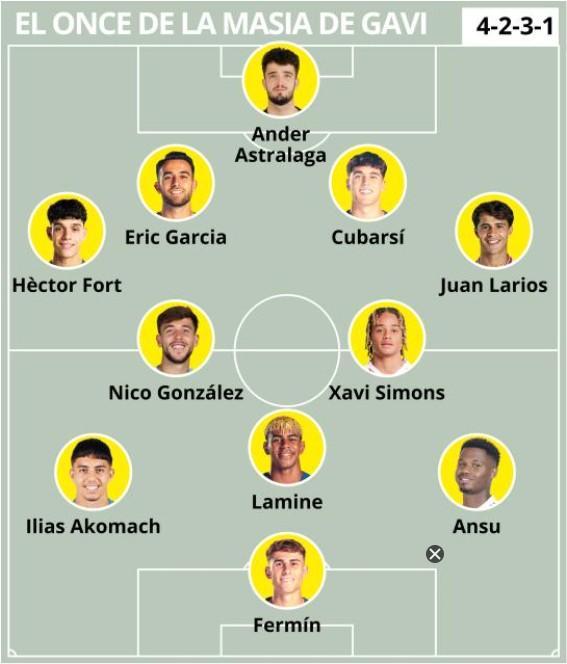 加维选拉玛西亚队友首发阵容:亚马尔、西蒙斯、冈萨雷斯在列