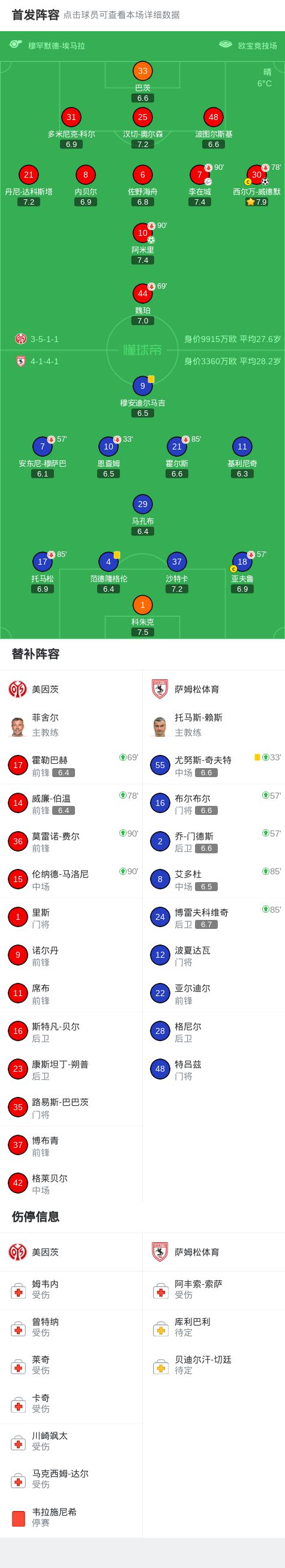 北京时间12月19日,欧洲协会联赛联赛阶段第6轮,美因茨迎战萨姆松体育。比赛中,李在城送出助攻,西尔万-威德默破门得分,为球队取得领先。随后,阿米里主罚点球命中,进一步扩大比分优势。最终,美因茨以2-0战胜萨姆松体育。